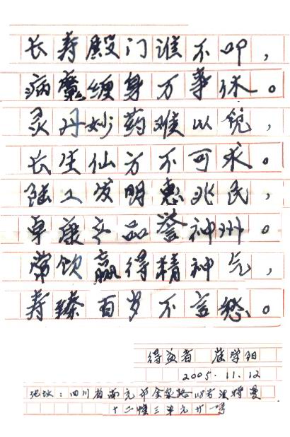 凡尊重中國(guó)古代養(yǎng)生智慧的患者,堅(jiān)持“已饑方食”和定時(shí)主動(dòng)補(bǔ)水者,均可祛病康復(fù)。如牡丹江醫(yī)學(xué)院87歲的張鵬圖飲用半年后高血壓未痊愈,陸江與他通話交流,了解他原先每日主食4兩,建議他用“已饑方食”減少主食肉食量,他理解后,將每日主食減為3兩,少吃兩塊肉,飲用一年治愈26年的冠心病和高血壓。他2003年5月31日來(lái)信說(shuō):“飲用卓康小分子團(tuán)水是根治高血壓、冠心病、糖尿病的一把金鑰匙,是填補(bǔ)醫(yī)學(xué)空白,為人類造福,應(yīng)推廣該產(chǎn)品。”